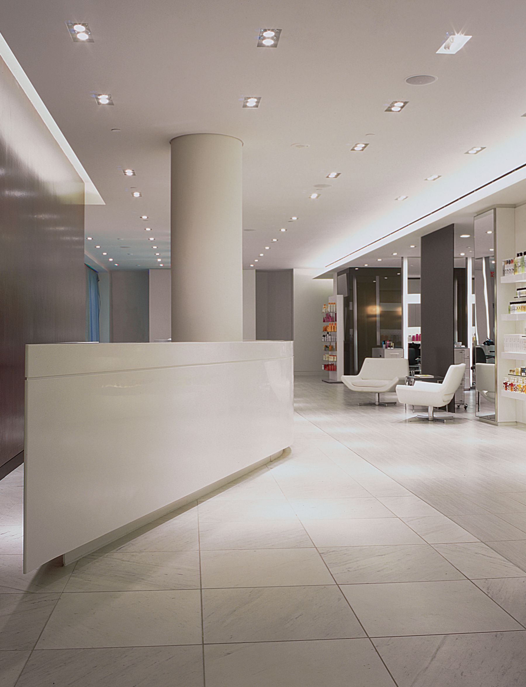 A full service, 7,000 sf men’s & women’s spa and salon on two levels within Holt Renfrew’s Vancouver flagship. The main level houses the hair salon and manicure and pedicure stations. Bronzed glass creates privacy and custom raked plaster defines the walls. The flooring is a mix of stone and porcelain tile. The lower level houses the spa treatment rooms in a modern, serene environment. The waiting lounge for the spa treatments features a custom red lacquer wall finish and a beautiful ornamental painted metal stair with a painted metal screen.