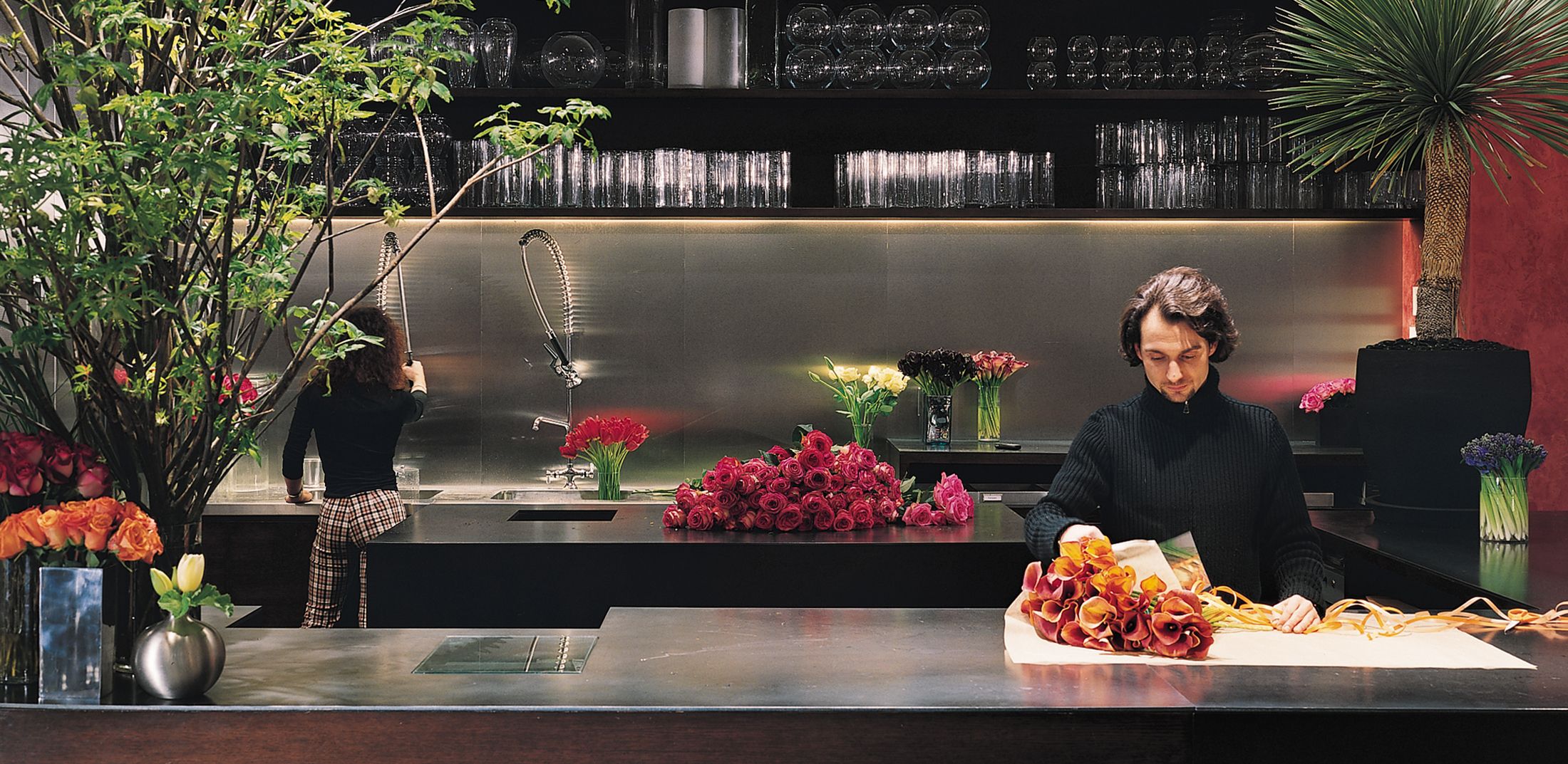 This floor-through renovation of Starwood Hotels & Resorts’ original W Hotel encompasses an expansive 24,000 square feet, including a spa, a gym, men’s and women’s lounge and locker facilities, three retail spaces, 11 guestrooms and four spa suites specifically designed for guests focusing their stays on health and wellness. On the northeast corner of the street level, a satellite of the well-known New York florist Bloom puts the theatricality of flower arranging at center stage, giving customers a window into the artistry. Adjacent to Bloom is the entry for the Bliss 49 Spa, as well as its salon and retail outlet. Just beyond lie dedicated elevators that deliver clients directly to the fourth floor, which is exclusively devoted to spa services and spa suites.