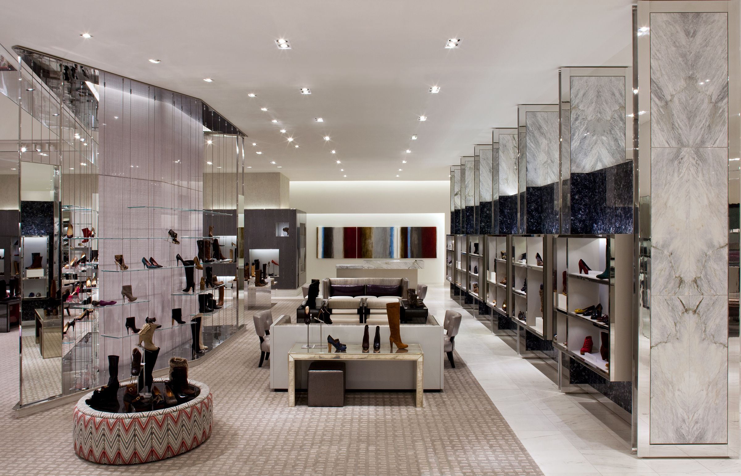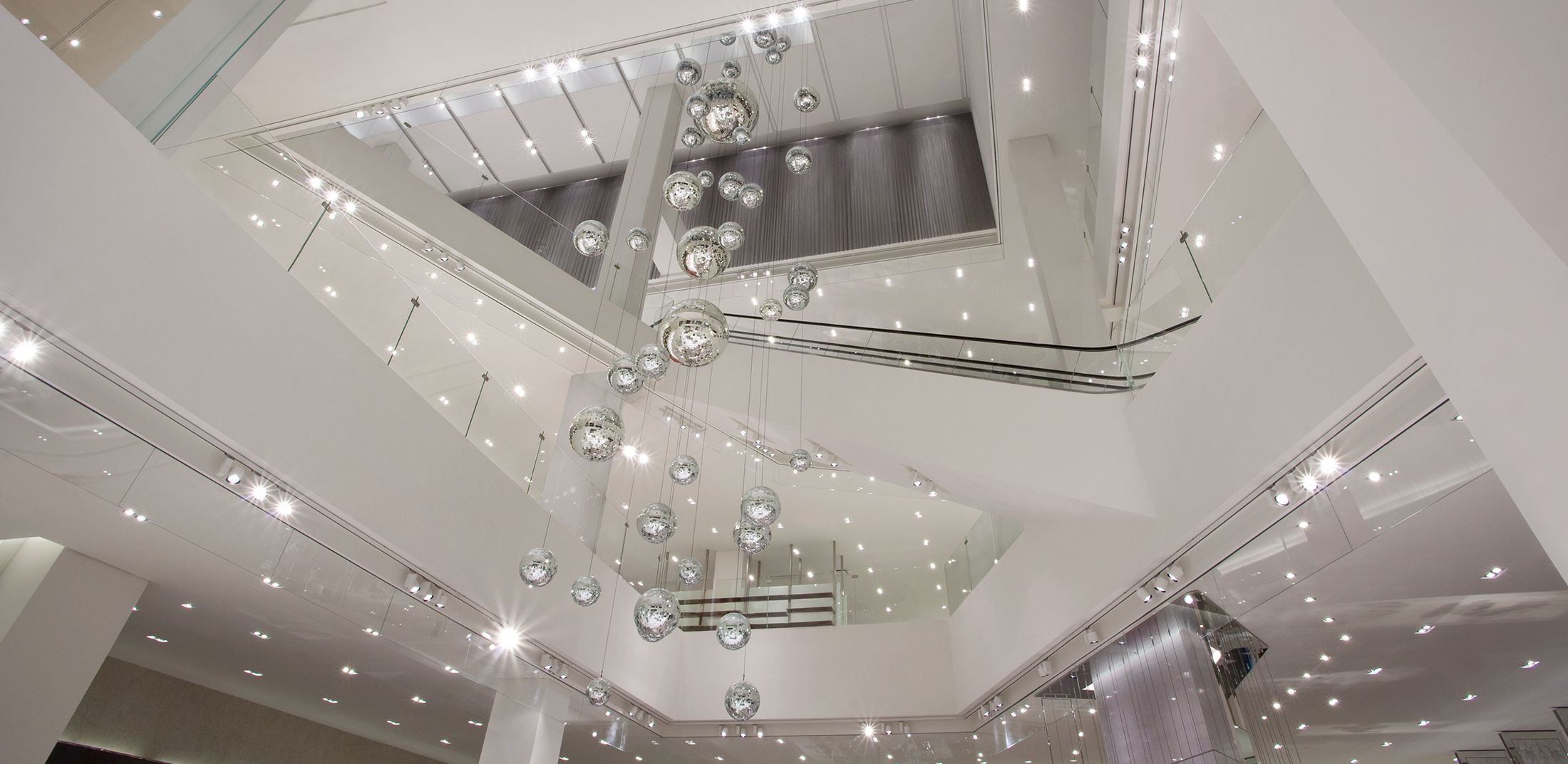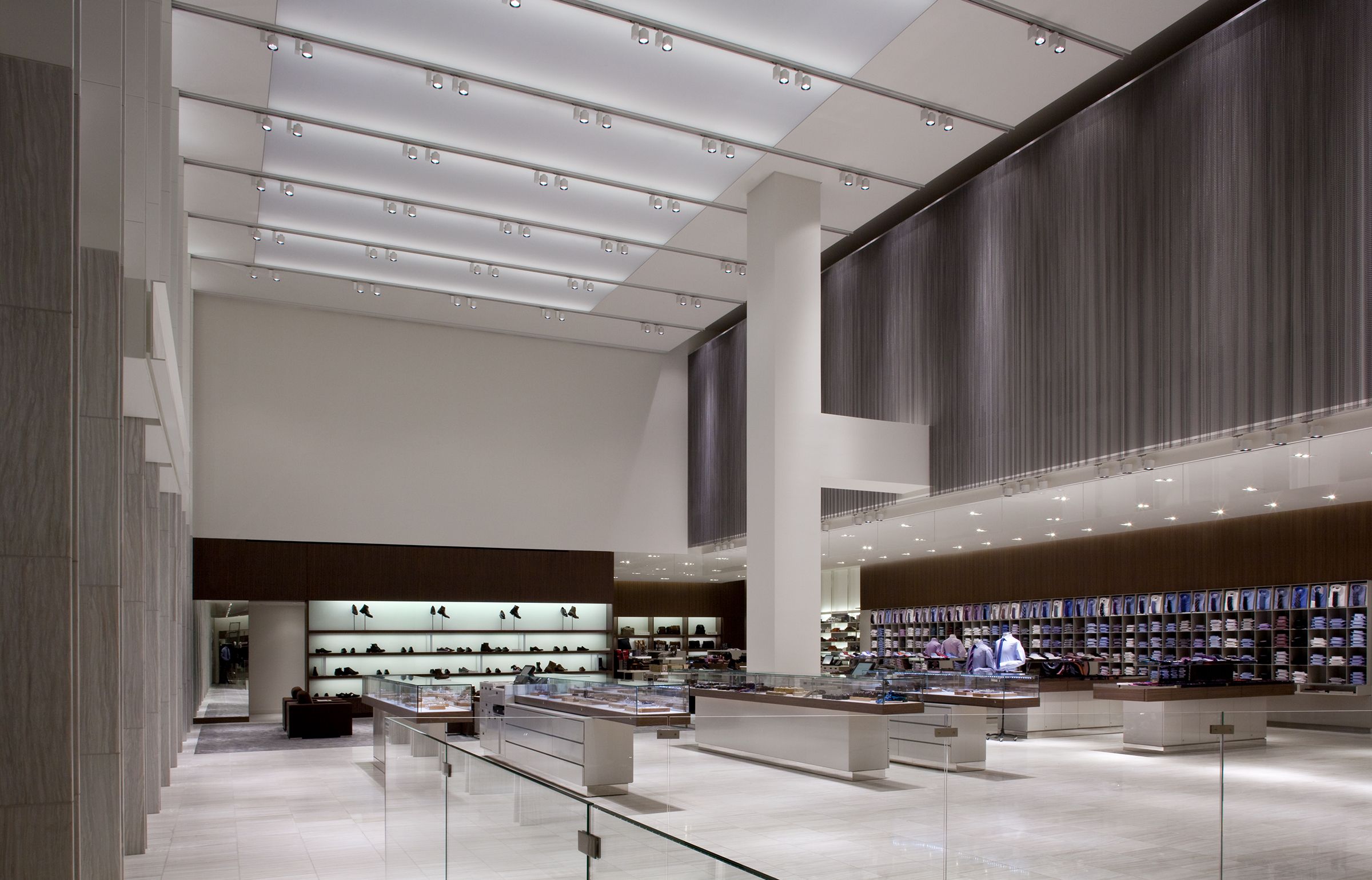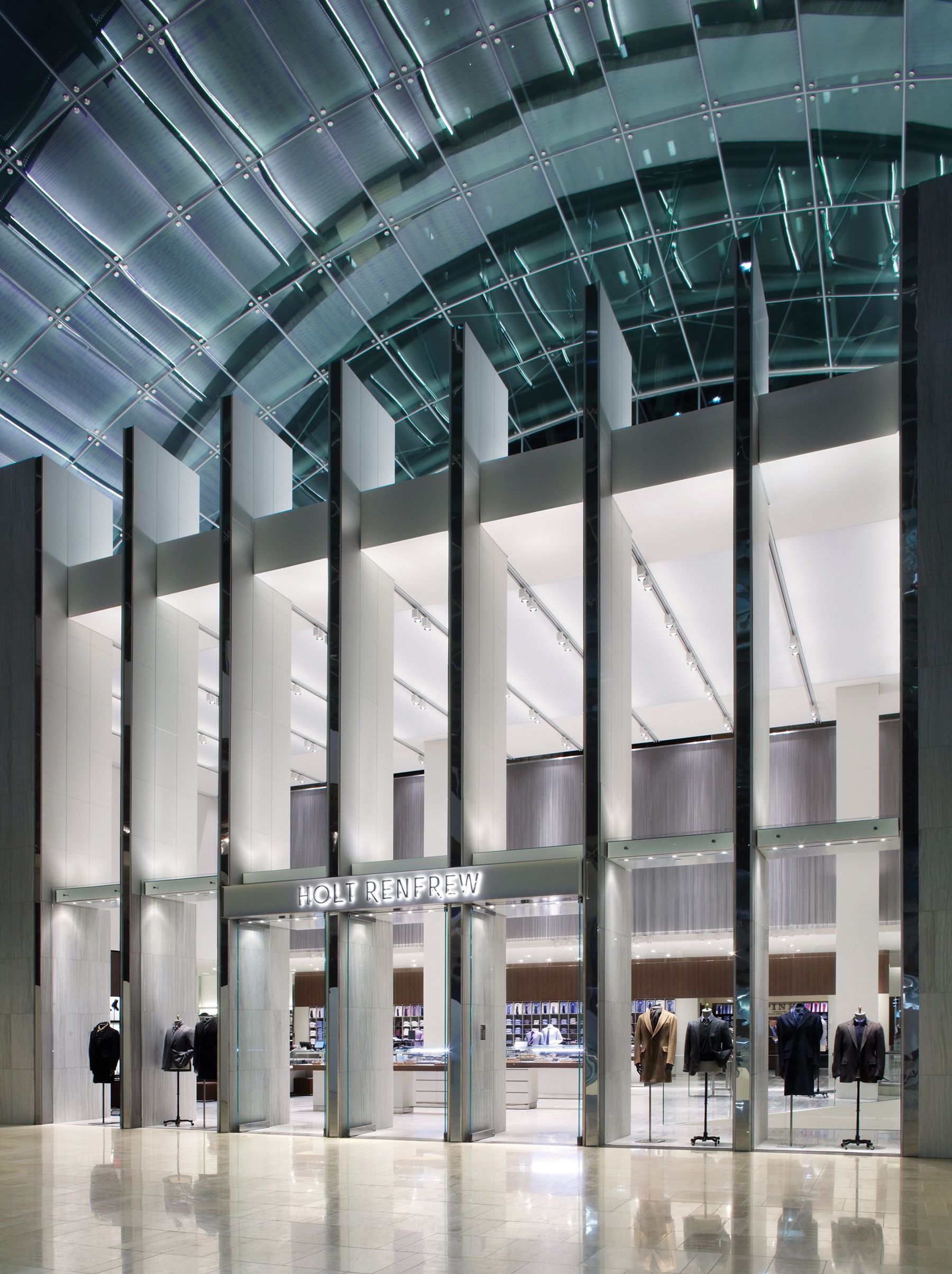 A new three level, 150,000sf HR flagship at the heart of downtown Calgary, the store features street level entry points as well as second and third level entries accessed via The Core, Calgary’s enclosed downtown mall. The separate entry points are acknowledged and connected vertically via a dramatic three-level atrium which contains connecting escalators. The escalators are positioned to encourage ease of movement from top to bottom of the store as customers are entering at all levels.